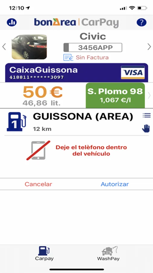 La aplicación "bonÀrea CarPay", para el pago en las gasolineras bonÀrea, permite activar los surtidores de nuestras gasolineras para repostar carburante con unos pocos clics de su teléfono.