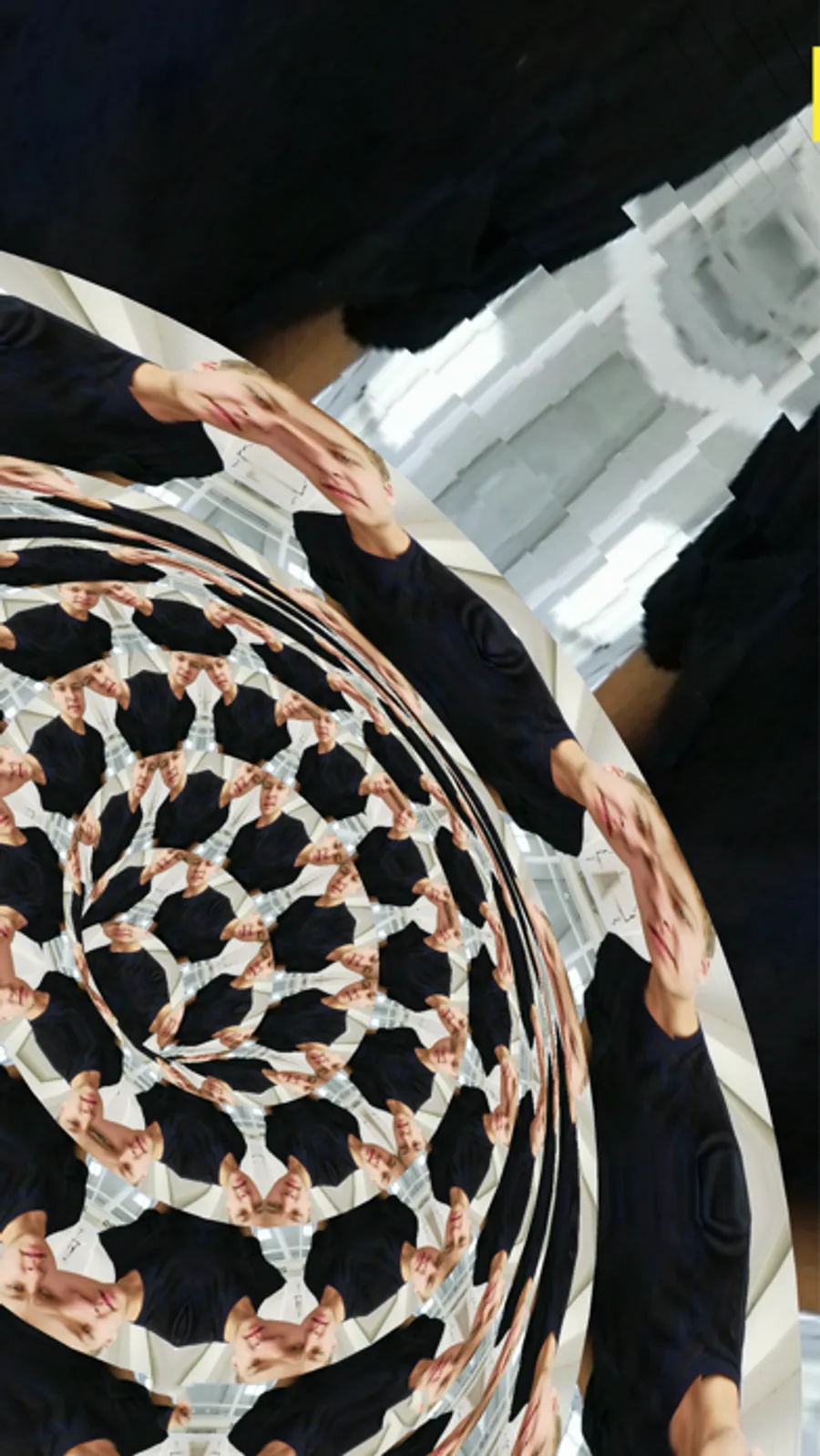 Selfie x Selfie opens a metaphysical portal in your mobile device that lets you travel deep into the hyperspace of your own selfie. It’s also an iOS app that uses your camera, motion sensors, and graphics hardware to generate a reactive 3D universe that responds to your movements in real time.