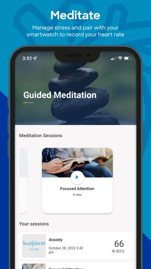 - Start guided meditation exercises and track heart rate with HealthKit integration