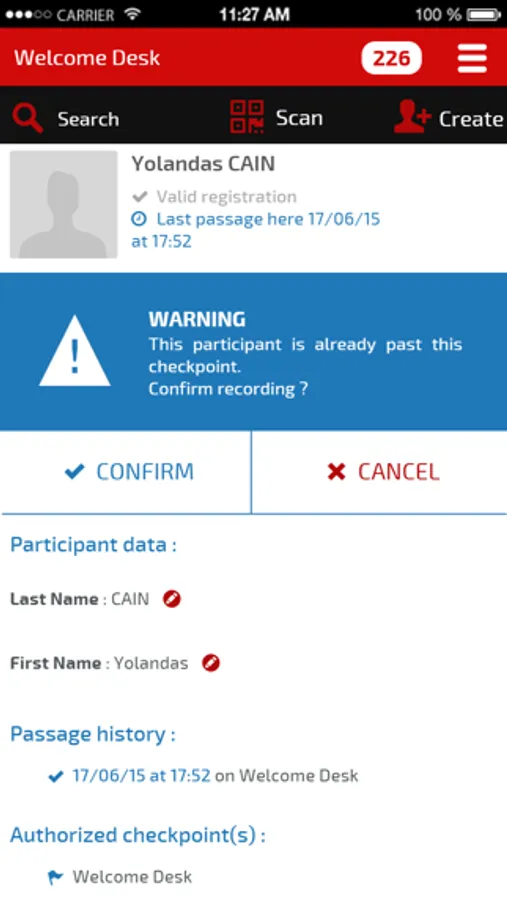 This control is effected either by scanning the QR code, or by instant search on the name and surname in the case of absence of badge.