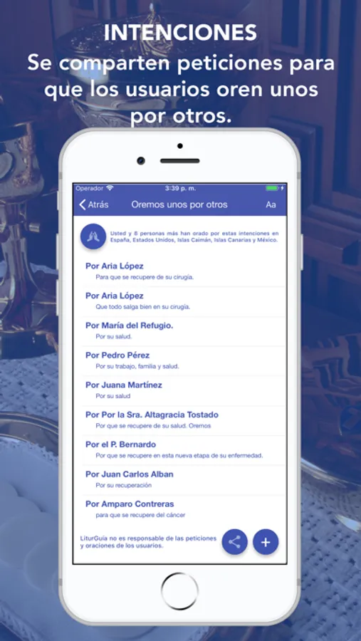 - Se puede orar por intenciones de usuarios en todo el mundo así como agregar sus peticiones para que otros usuarios oren por ellas.