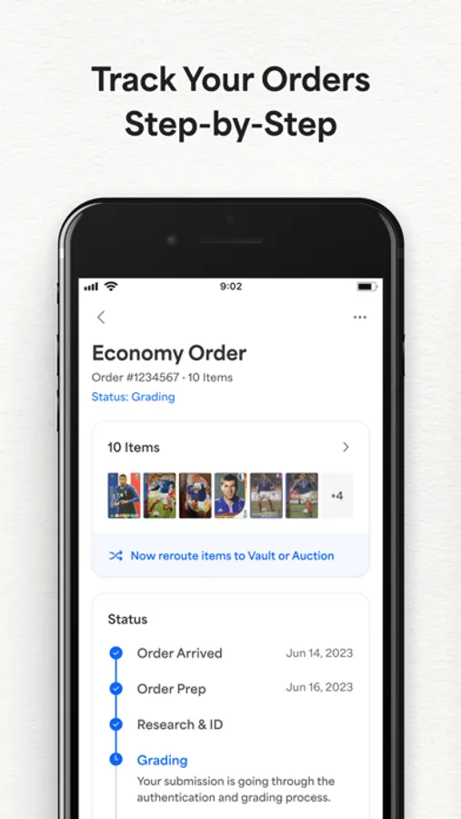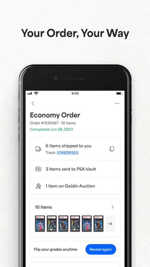 Track orders, reveal grade results and easily list cards for sale in the PSA app.