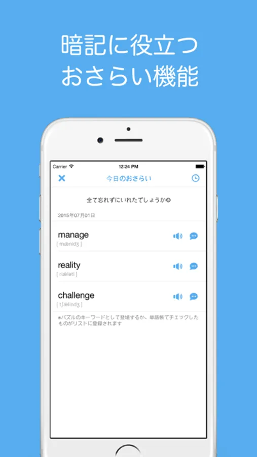 単語テストが届いた際、通知センターからアプリを起動すると、その単語の意味がチェックできます!
