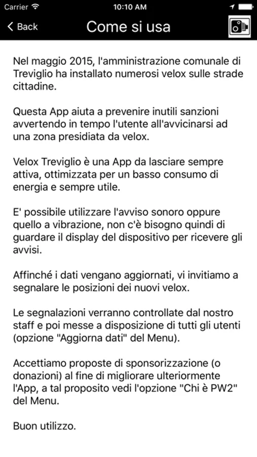 Questa App aiuta a prevenire inutili sanzioni avvertendo in tempo l'utente all'avvicinarsi ad una zona presidiata da velox.