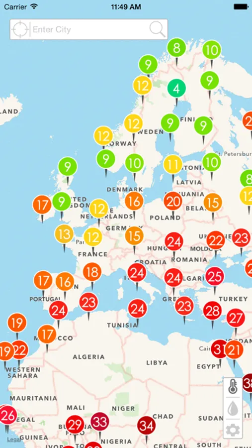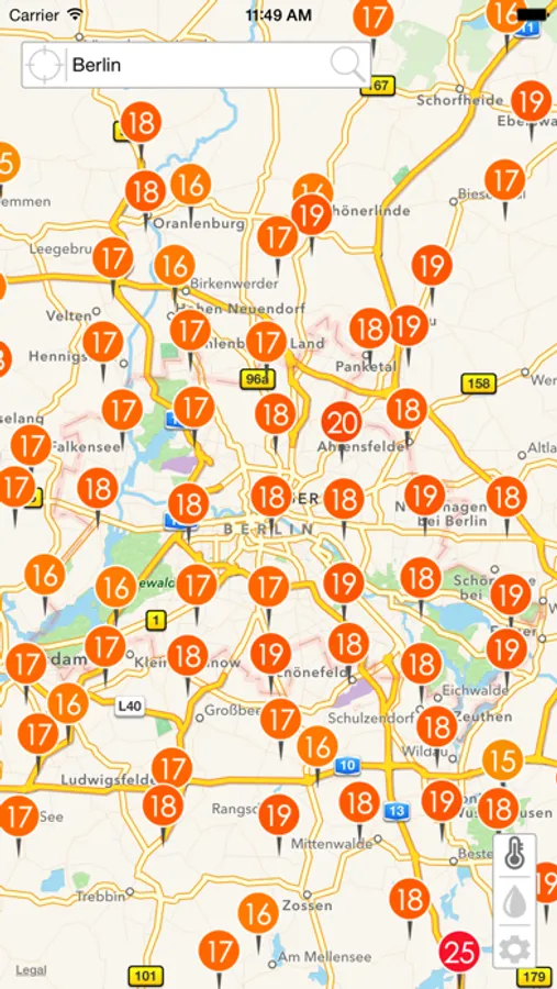 With Weather Map you can real time track the weather in the whole world. With the network of the public Netatmo stations you can see the current temperature and rain value.