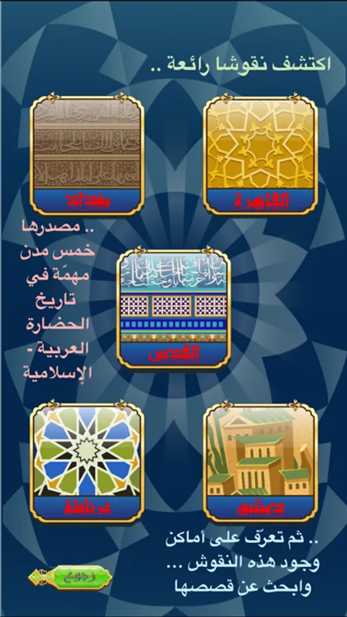 نقوش في الذاكرة هي لعبة تمزج اختبار ذاكرتك وبراعتك ، مع استكشاف جوانب من فنون الحضارة العربية - الإسلامية عبر السياحة في بعض مدنها.. استمتع بالتحدّي، حسّن مهاراتك الفكرية، وتعلّم عن إبداعات حضاريّة مهمّة تشهد على تاريخ غنيّ وحافل