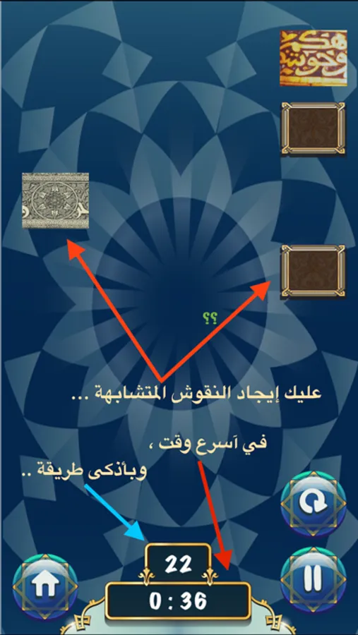 يتوجب عليك أن تتذكر مواضع النقوش المختلفة، لتجد المتشابه بينها... ولكن هذا لا يكفي : لا بدّ لذاكرتك أن تكون قويّة و أسلوبك مبدعا لكي تتمكن من النجاح في أسرع وقت وبأفضل طريقة ممكنة