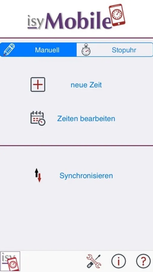 Mobile Zeiterfassung für isyControl und isyTimes. Setzt die Installation eines dieser Produkte von isyControl Software am Arbeitsplatz und einen Account für mobile Zeiterfassung voraus.