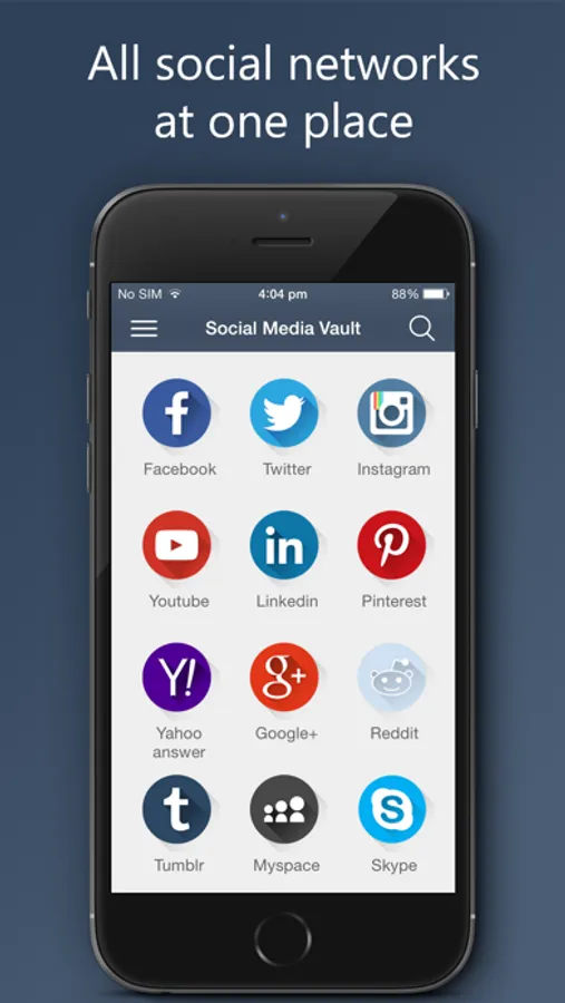 Access all your social media securely and conveniently with Social Media Vault. With its password-protected interface, you don’t have to worry about others accessing your social media accounts. In addition, the application has a host of secondary security features that keeps your social media accounts hidden and non discover-able by others.