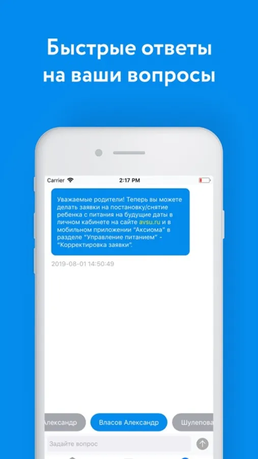Официальное приложение проекта AVSU.RU. В приложении Вы сможете проверить баланс лицевого счета ребенка, оплатить питание ребенка в школе и детском саду с банковской карты, заказать новую карту питания, загрузить историю питания за нужные даты, перевести денежные средства между субсчетами. В разделе"Информация" вы можете ознакомиться с особенностями работы проекта в Вашей школе или детском садике. Через "Написать в поддержку" задавайте возникшие вопросы по питанию , а в разделе "Корректировка заявки" верифицированные пользователи могут поставить и снять ребенка с питания.