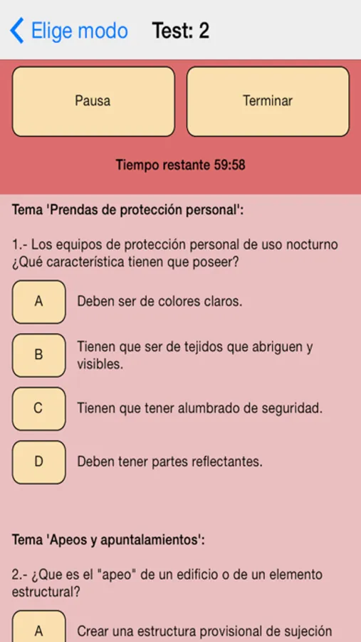 - Dos modos de realizar un mismo test (modo de respuesta instantánea o modo exámen).