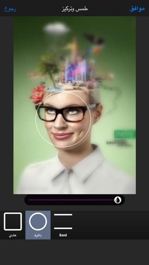 يمكن طمس او اضافة تخبيش على المنطقة التي تفضلها "مفيدة لتشويش جزء من الصورة لمسحه"