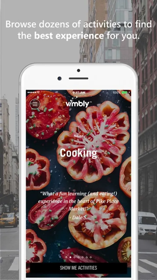 Don't have plans tonight? Just moved to a new city? Need to spice up date night? Vimbly makes it easier to find the best events, activities and experiences in your city. Browse through our list of curated activities and book your next big adventure without having to leave the app. Download Vimbly and start exploring all the most fun things to do near you!