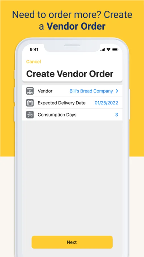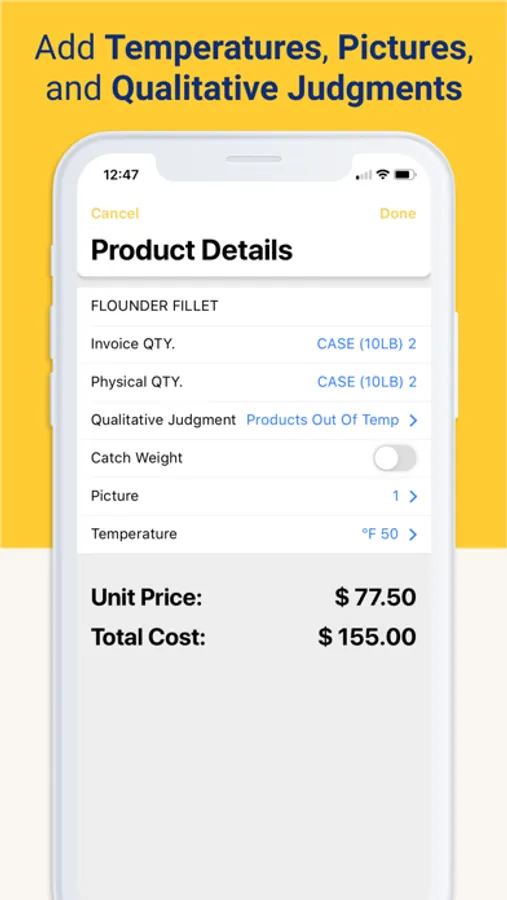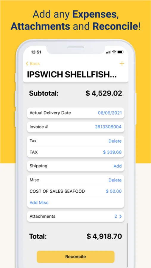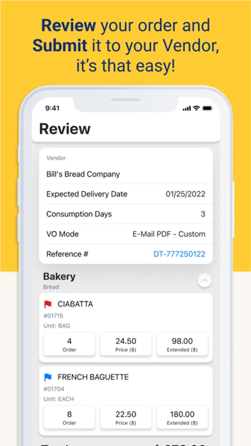 Confirm product quantities and temperatures, apply qualitative judgments, and attach feedback or pictures to products or orders – all in the app. Did you realize you need more products when you're doing inventory or receiving? No problem: now Reconciler can create vendor orders and make sure you have what you need as soon as you need it.