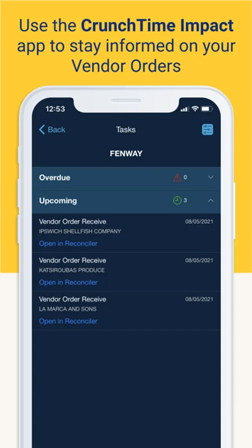Reconciler by Crunchtime is a mobile application that enables staff to manage all order receipt functions at the point of vendor delivery using any mobile device. Reconciler decreases the time managers and staff spend receiving, reviewing, and logging deliveries so they can spend more time managing other pressing needs in the restaurant. And the best part? Reconciler integrates fully with Crunchtime’s enterprise management solution.