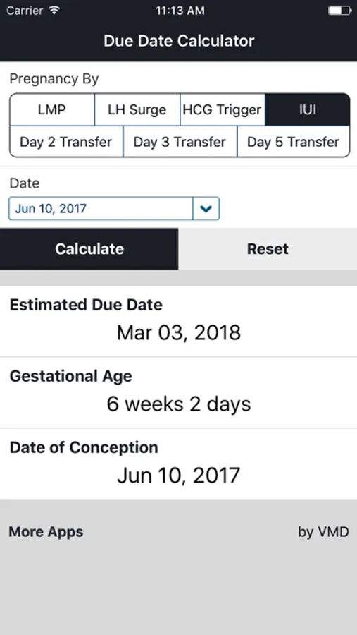 The Due Date Calculator app is a fertility-specific pregnancy due date calculator designed primarily for physician use. The app calculates the pregnancy due date for women who have undergone fertility treatment including embryo transfer, IUI and egg retrieval. Due date information may also be calculated using the date of ovulation.