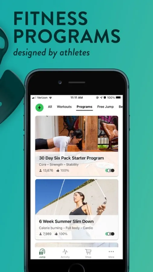 If you have AMP, our Bluetooth-connected jump rope handles, the Crossrope app counts your jumps in workouts with Personalized Jump Targets and enables Free Jump and Benchmarks.