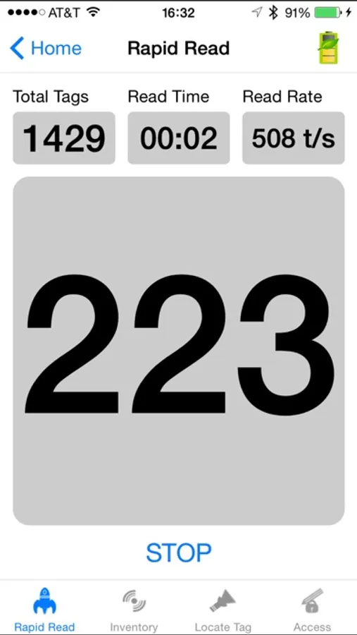 2. Rapid Read – A simple screen to quickly get unique and total tag counts.