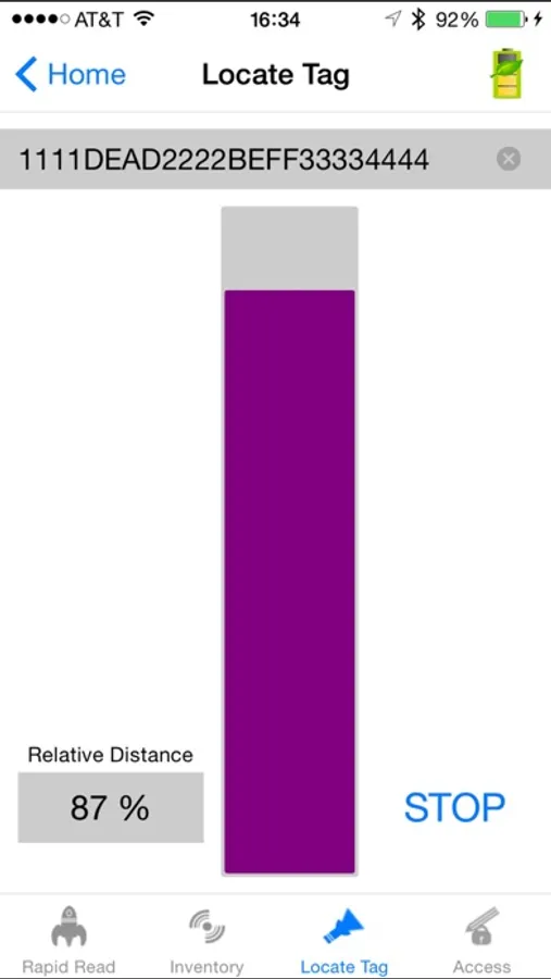 3. Locate Tag - Use the Locate Tag feature to find and locate an item by searching for a specific Tag ID. The device will provide feedback that indicates the relative distance to the tagged item.
