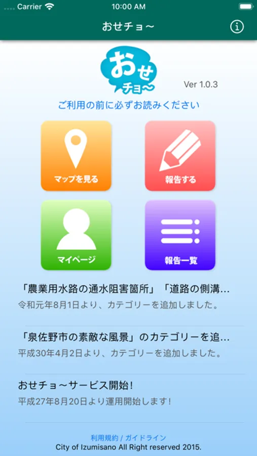 泉佐野市では、まちで見かけた地域の課題を、スマートフォンなどから市に報告できるアプリ「まちレポ泉佐野 おせチョ~」を開発しました。