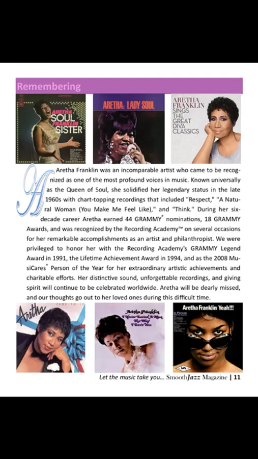 Welcome to Smooth Jazz Magazine a music lifestyle publication providing a blend of articles from Entertainment, Fashion, Food, Music and Travel. Giving you a blend of Smooth, Traditional and Latin Jazz...along with some of the hottest Smooth R&B and Pop vocals and the best in Blues, Gospel and more..Providing you with in-depth articles and photos on some of your favorite artist while providing current concerts, festivals, and CD reviews. So whether you are at home, vacationing or traveling on business, each colorful issue we will informed you as you.... Let The Music Take You...