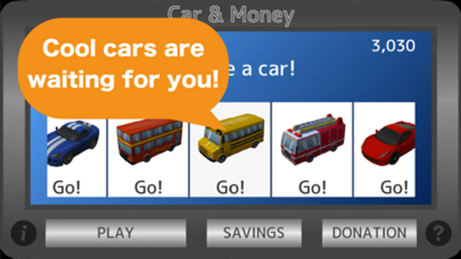 Let's enjoy to play with a toy car, and collect coins!
