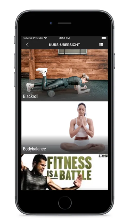 Direkter und aktueller Zugriff auf den Gruppentrainingsplan: Für jeden Kurs können Sie Details wie Zeit, Kursbeschreibung und leitender Trainer einsehen.