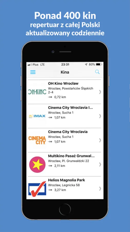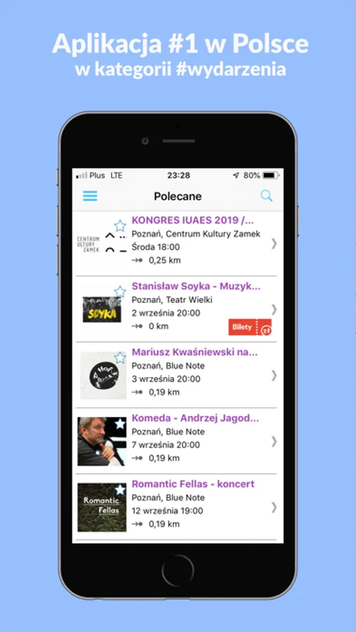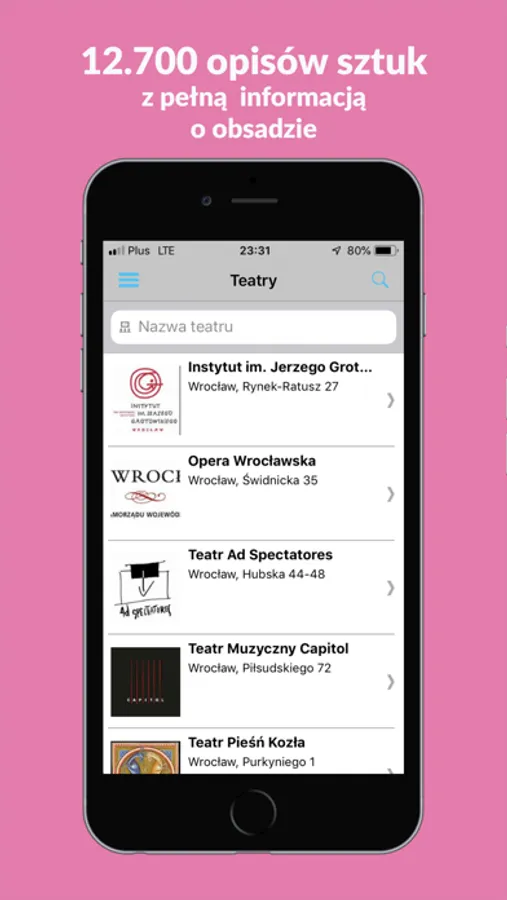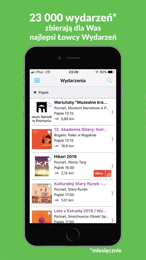 The coigdzie.pl® app includes over 23,000 events from Poland per month, including: over 4,000 concerts and 3,000 theater performances from all theaters in Poland. We inform you about over 34,000 film projections from over 450 cinemas every week.