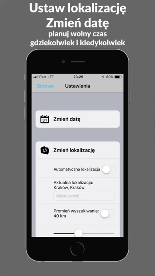 Each event has a detailed description, graphics, start time and address of the event, location on the map, information about ticket prices, phone number and link to the organizer's website. You can change the location, date and search radius in the application menu.