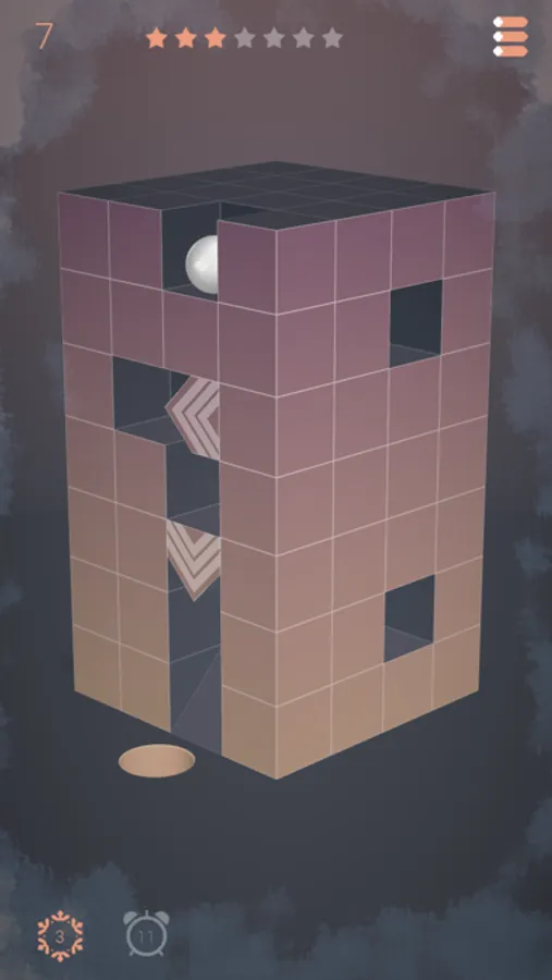 A humble ball is stuck at the top of a big block and all it wants is to get down below to its cozy little hole. But gravity alone won't cut it. A solution is waiting to be discovered, a way through the little pathways needs to be created. Observe the problem, rotate the block to adjust perspective, visualize a path and then set the ball free by arranging the elements in just the right way.