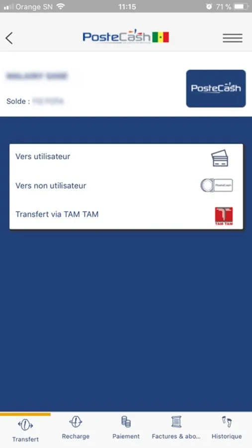 transférer de l'argent vers un autre détenteur de carte PosteCash,