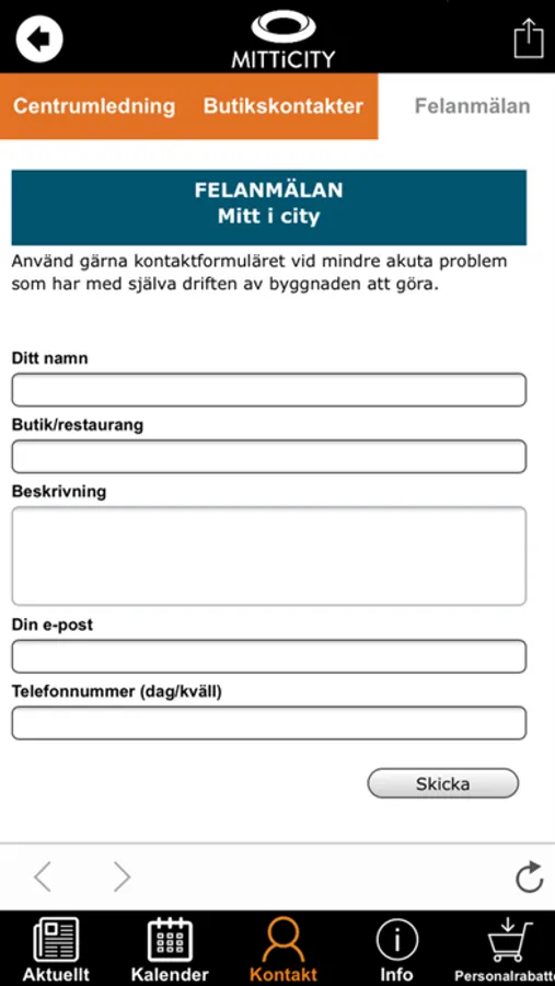 Intern applikation för alla anställda som arbetar och verkar på MItt i City Shoppingcenter, appen skyddas av lösenord som distribueras av centerledningen.
