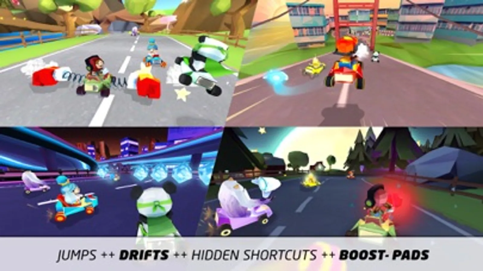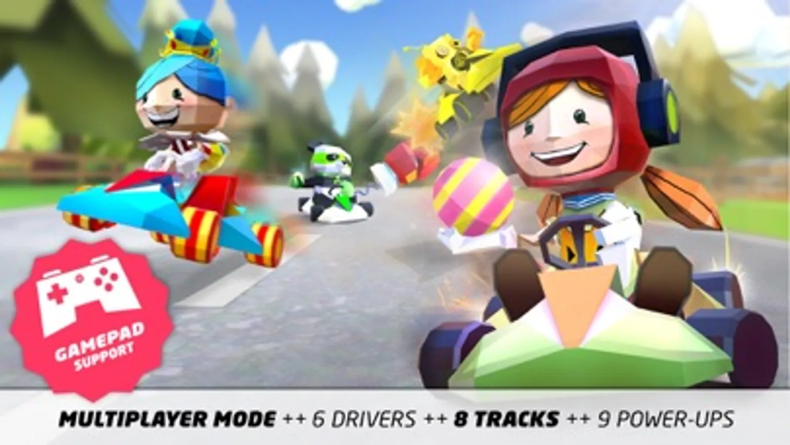• Race and battle with friends and family in cups or individual races.