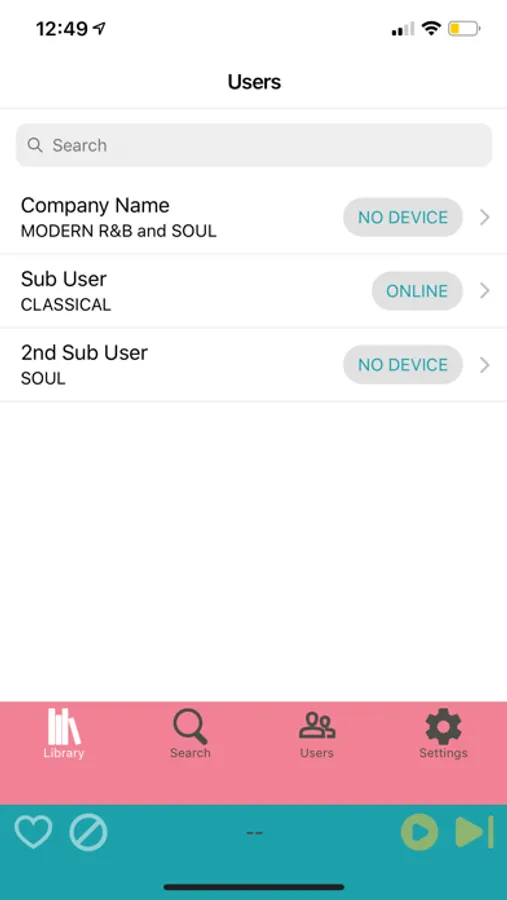Manage the SoundMachine player remotely, both for the main account and the users. Choose what music is playing and change it any time.