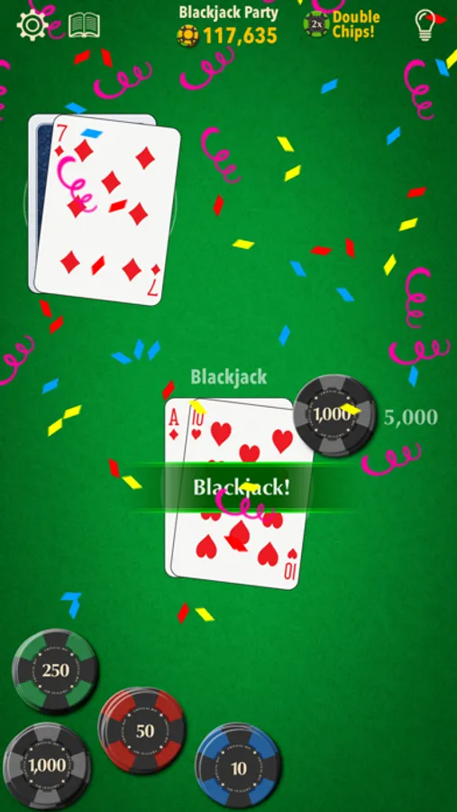There are 3 card back designs to choose from, each with Classic and Giant faces. You can adjust the play speed to set your own pace. There are convenience options to automatically stand when you reach 21 and to repeat your last bet after a loss.