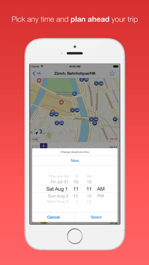 - you can select any moment in time to display departures. Planning a 1st of August visit ? Yap, this feature is for you !