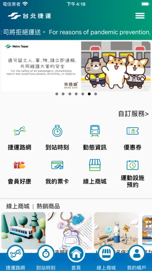 更多連結、到站時刻、首頁、捷運路網、聯絡客服,使用者可根據喜好習慣設定主要畫面,節省操作時間。