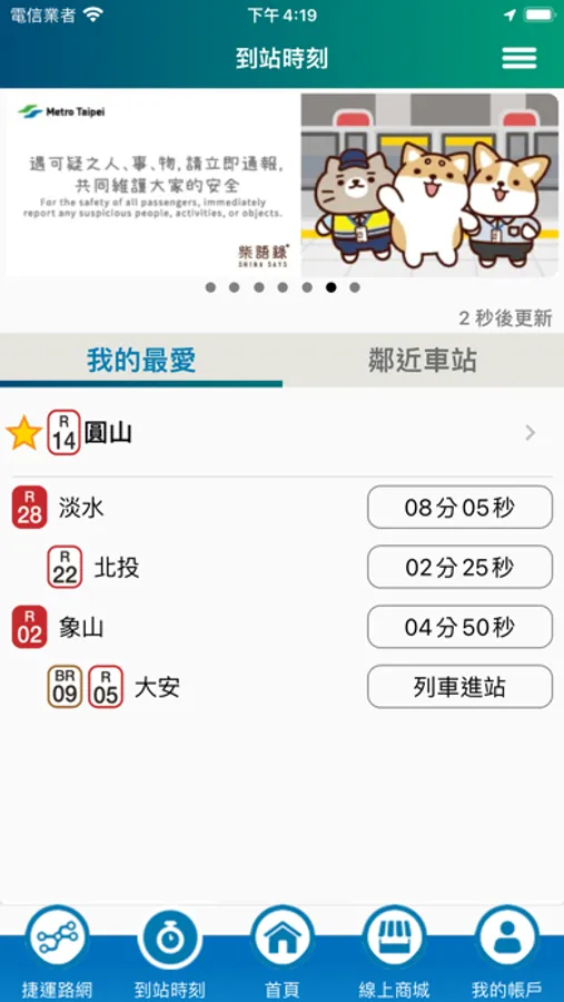 將常用車站設定為「我的最愛」可即時查詢列車到站時刻。