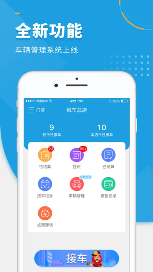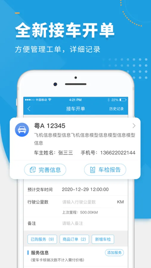 使用该软件进行智能接车,让汽修服务更专业、师傅工作更轻松,助力门店智能化经营。