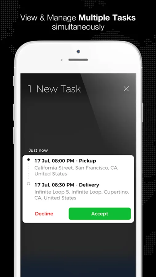 Using the Tookan App, you will never have to call the manager again to get the task information or to provide the status. The App does it all, automatically. It's simple, efficient, and friendly.