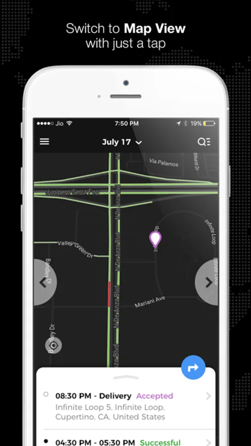 • Bird's eye view of all the assigned tasks (List view & map view)