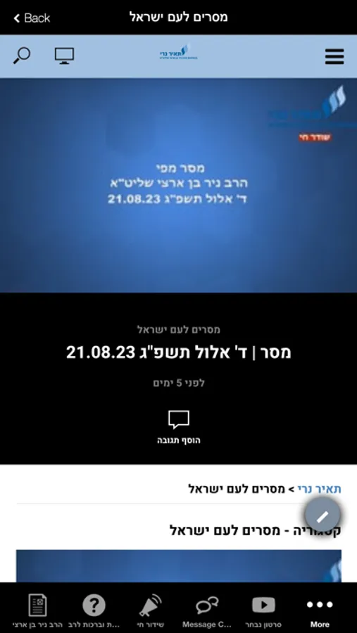 התקופה הזו שבה אנו נמצאים היא תקופה מאוד מיוחדת. קורים דברים משונים בעולם ובארץ, עם ישראל צריך להתאחד בכדי לגבור על כל הקשיים והאיומים מבית ומחוץ. על כך ועוד מדבר הרב ניר בן ארצי שליט"א בכנסים בהרצאות ובמפגשים עם מגזרים שונים ומגוונים בכל רחבי הארץ.