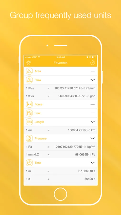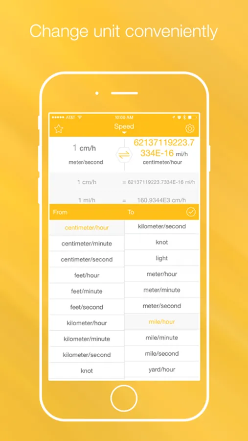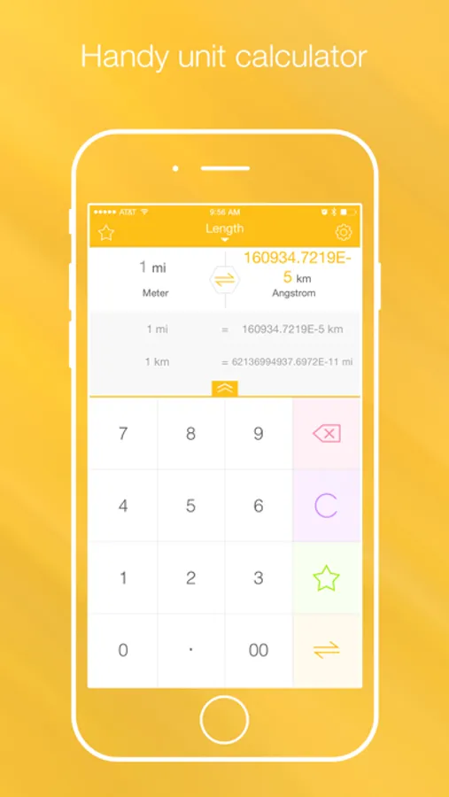 Operation is easy and quick, and you can convert one unit to multiple other units; you can set the number of decimals, favorite section, which units are shown and passcode protection etc.