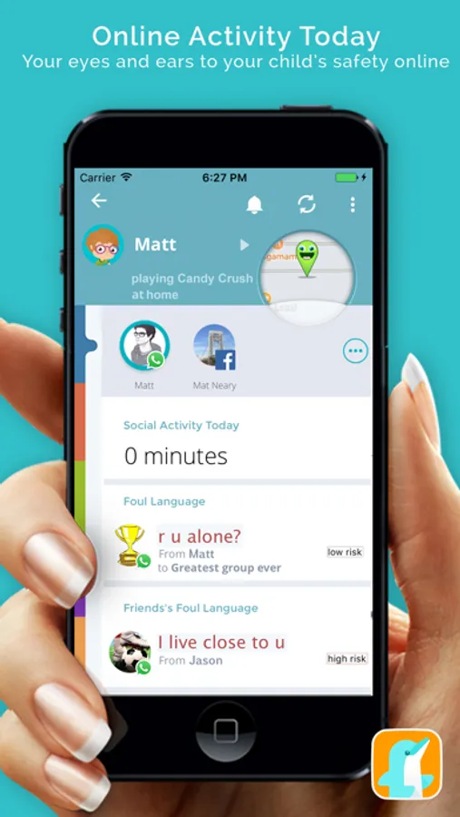 Surfie-Parent is your eyes and ears to your child’s online safety. We keep you in the know and let you know whenever anything needs your attention: if your children are being cyber bullied, if they are online where or when they shouldn't be, their location and more. It is not about prying or spying. It is about being an involved parent!