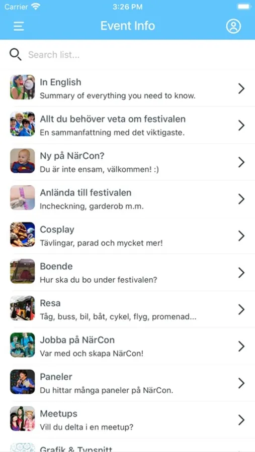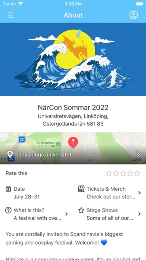 This is the official app for all of NärCons festivals and events! You only need to download it once, and we'll update it ahead of each of our event so you'll always have the latest info with you! All information and every schedule will be available in English.