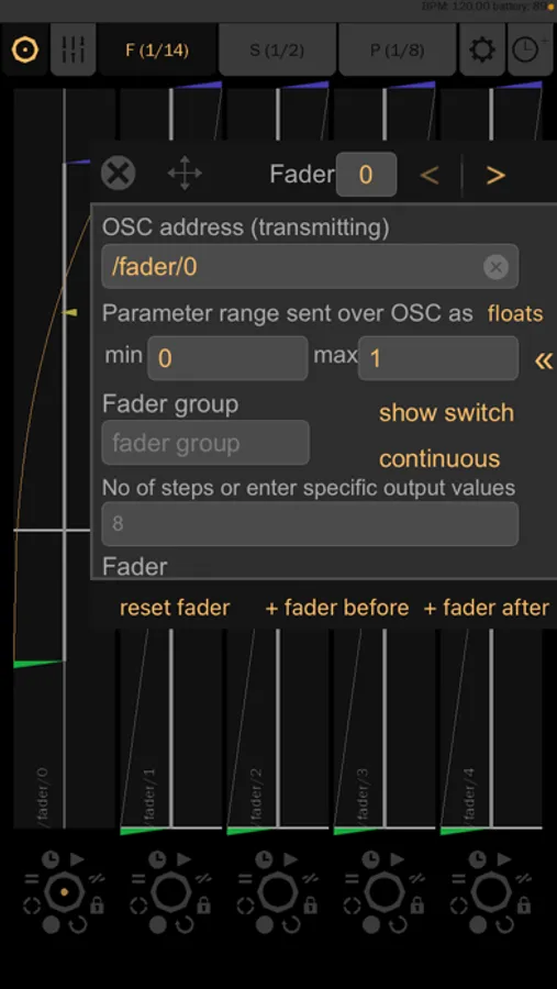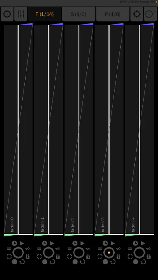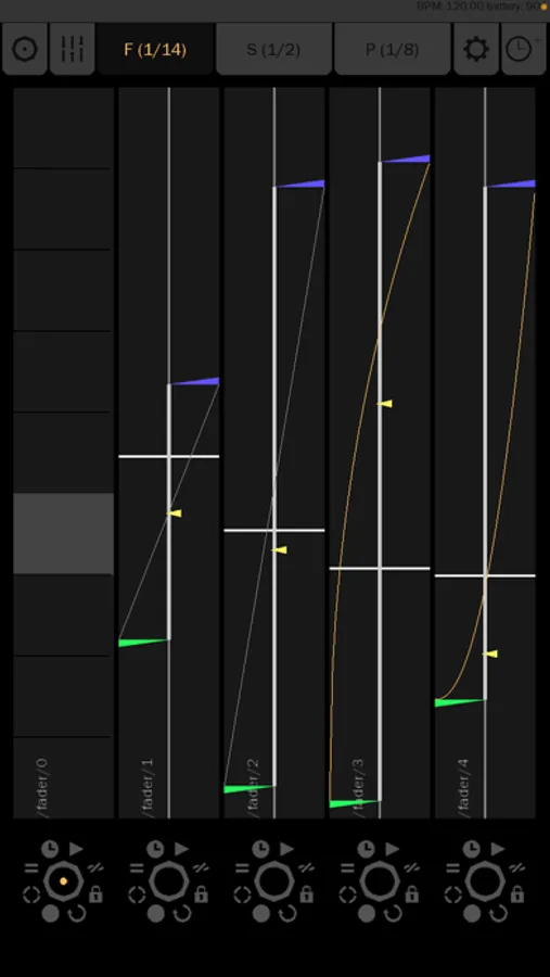 Each Fader can also be remotely controlled and automated by the Gesture Recorder, internal LFO generators, audio analysis and sensors, external OSC sources and MIDI controllers.