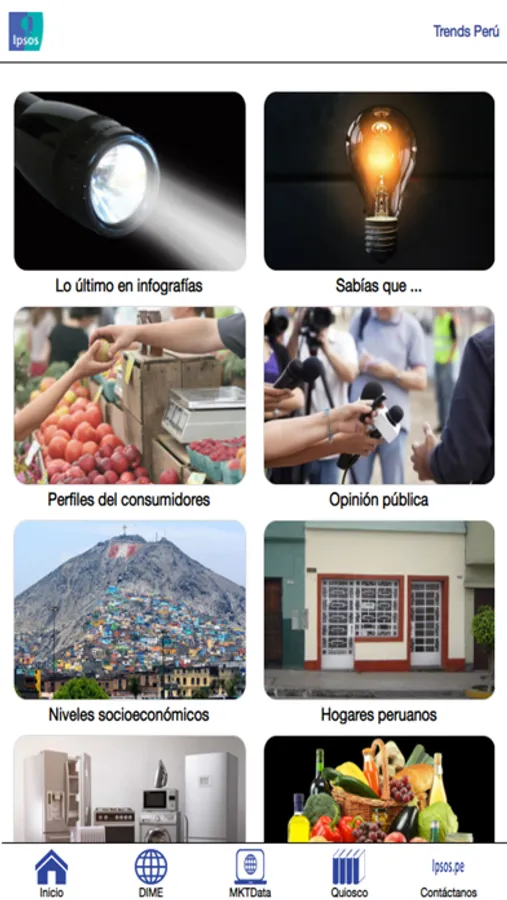 Información actualizada y confiable para conocer mejor a la población del Perú, sus principales características como consumidor y expectativas como ciudadano. Además, la penetración de importantes bienes y servicios en los hogares y algunos cálculos estadísticos para quienes interactúan directa o indirectamente con la investigación de mercados.
