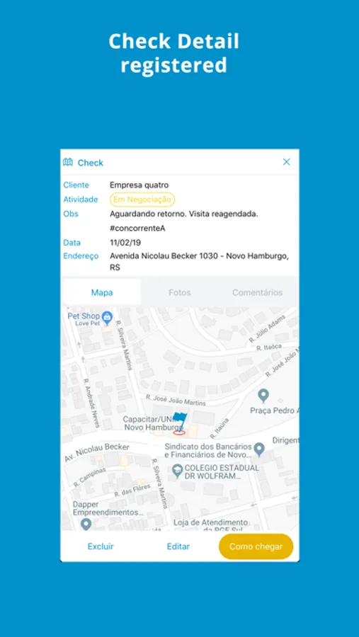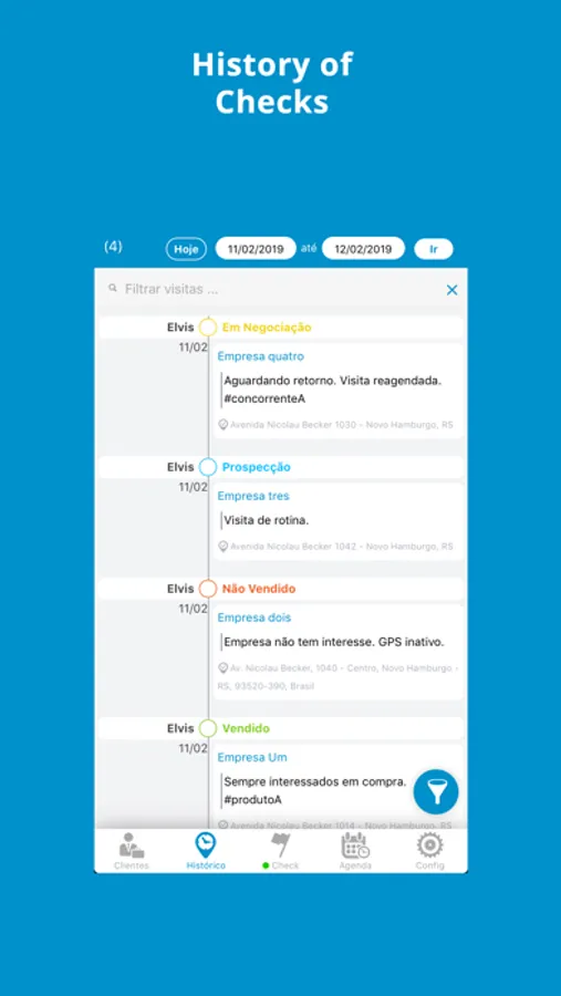 Minha Visita is a highly PERSONALIZABLE CHECK-INS service that aims to ELIMINATE the weekly/monthly visit reports used by salespeople, representatives and companies.