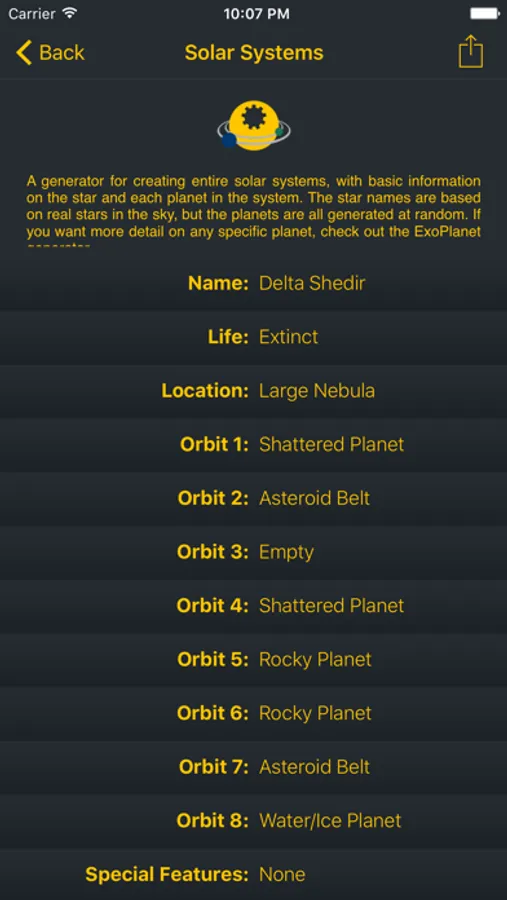 - Each monster, planet, unit, culture, etc. that you create comes pre-equipped with specific information such as name, life type, orbit for solar systems, deployment type for army units, and much more. Anything you need to build your story is pre-included, and changes with each tap of the finger.