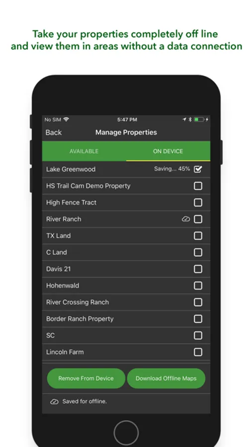 - Use our cutting-edge off-line ability to view your properties in full detail, even when completely off the grid.
